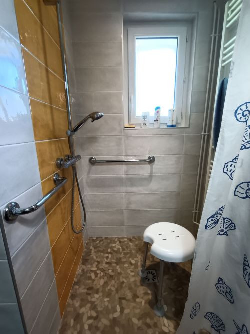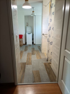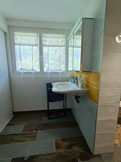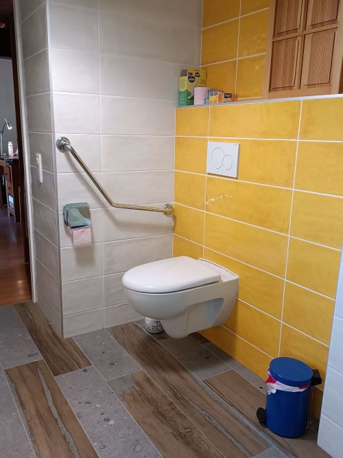 - das neue BadDurch die verschiebung der Heizung wurde der Raum neben dm Bad frei. Dadurch ist ein neues grosszügiges Bad entstanden.